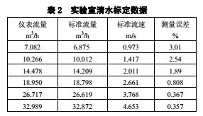 現場試驗所用測量管的內徑為DN50,通過高壓由壬接入泥漿管線,并串接渦輪流量計進行比較,采用標準計量罐測試。計量鉆井泥漿密度范圍為1.15g/cm³~2.50g/cm³,固井設計施工現場一次性替漿量為18m³~160m³,替漿瞬時流量為0.2m³/min~2.8m³/min(流速:1.6~23.8m/s);通過近15口井的施工應用,結果如表1所示。試驗表明儀表計量誤差小于1%;在流速2.0m/s以下,隨著流量的減少測試誤差逐漸提高,在流速1.0m/s左右計量精度降到3%左右。經分析,主要是由零點漂移引起的,這點與實驗室用清水標定結果基本吻合。使用DN50的測量管,實驗室標定結果如表2所示。試驗證明,采用雙頻矩形波作為勵磁信號,可有效地規避和抑止固井泥漿的流動噪聲和現場震動等所帶來的低頻噪聲,從而顯著提高儀表計量泥漿的精度。