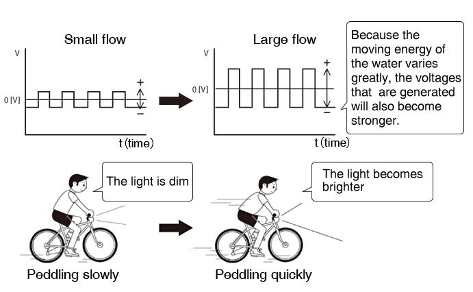 由于水的移動能量變化很大,所產(chǎn)生的電壓也會變得更強。
