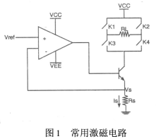 以往的激磁電路的設(shè)計都是采用恒流源和可控開關(guān)電路組成。恒流源是由電壓基準(zhǔn)、比較放大、控制調(diào)整和采樣等部分組成的直流負反饋自動調(diào)節(jié)系統(tǒng),常用的激磁電路就是用串聯(lián)調(diào)整型恒流電源盒控制開關(guān)組成的,如圖1。其中Vref是參考電壓,Rs是采樣電阻,Is為流過Rs的電流,就是所需的恒流,RL為電磁流量傳感器線圈,K1、K2、K3、K4為可控開關(guān),以達到使線圈RL中流經(jīng)正負交換的電流,對傳感器激磁。