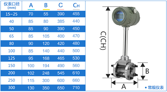 3、溫壓補償一體型帶有溫度、壓力傳感器,用于氣體流量測量可直接測量出氣體介質的溫度和壓力,從而顯示氣體的標況體積流量。