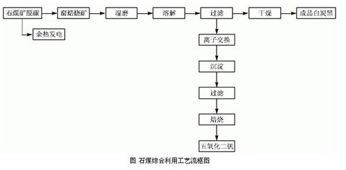 本項目為石煤綜合利用的項目。現有提釩工藝產生大量廢渣。其主要成分為二氧化硅,但其中夾帶有大量的釩資源,釩資源利用率低,同時,該廢渣中堿含量較高,如將廢渣隨意堆放,易造成環境污染。本項目*大特點在于利用現有提釩工藝中的提釩二次渣作為制備沉淀法白炭黑的主要原料,將廢渣中的硅資源得到充分利用。為企業創造了新的經濟增長點,同時,解決了現有提釩生產中造成的釩資源浪費和環境污染問題,此外,該項目利用現有提釩生產線脫碳工序中產生的余熱作為加熱熱源,取代了傳統工藝以煙煤為主要燃料的方法,即對生產中產生的余熱得到了有效合理的利用,又進一步降低了產生的燃料成本,達到了節能減排,資源綜合利用的目的,工藝流程框圖如下。