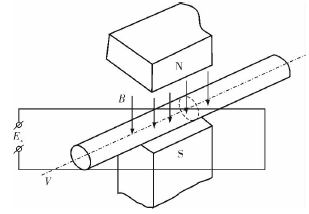 工業(yè)鹽水流量計(jì)是利用法拉*電磁感應(yīng)定律設(shè)計(jì)的流量測(cè)量?jī)x表,用于測(cè)量導(dǎo)電液體的體積流量。根據(jù)法拉*電磁感應(yīng)定律,當(dāng)導(dǎo)體切割磁力線運(yùn)動(dòng)時(shí),導(dǎo)體內(nèi)將產(chǎn)生感應(yīng)電動(dòng)勢(shì)Ex(圖1),方向根據(jù)右手定則確定,感應(yīng)電動(dòng)勢(shì)Ex的大小與磁場(chǎng)的磁感應(yīng)強(qiáng)度B、傳感器管道的內(nèi)徑D和流過(guò)導(dǎo)電液體的流速V成正比,B、D、V三者相互垂直,即Ex=BDV。