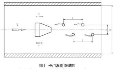 按國際標準化組織 IS07145(在環(huán)形截面封閉管道中的流體流量測定--在截面一點的速度測量法),采用埋入壓電晶體的渦街測速探頭,插入大口徑工業(yè)管道內(nèi),將卡門旋渦頻率轉(zhuǎn)換為與流量成正比的標準信號:(4 ~ 20)mA DC。
