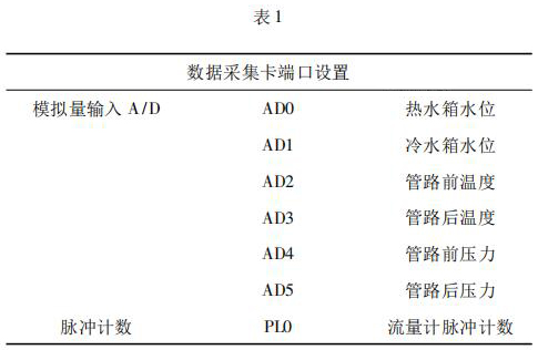 數(shù)據(jù)采集系統(tǒng)由工控機(jī)、化工污水流量計(jì)以及數(shù)據(jù)采集卡組成。 4000 次冷熱沖擊試驗(yàn)要求在在*大流量 qs 條件下運(yùn)行,對(duì)流量數(shù)據(jù)的采集用到化工污水流量計(jì)及數(shù)據(jù)采集卡。化工污水流量計(jì)采集管路流量,數(shù)據(jù)采集卡將化工污水流量計(jì)采集到的數(shù)據(jù)反饋給工控機(jī)系統(tǒng)。過(guò)程中,試驗(yàn)管路水溫以及水箱水位的采集控制也是通過(guò)數(shù)據(jù)采集卡反饋給系統(tǒng)控制。試驗(yàn)過(guò)程用到的數(shù)據(jù)采集卡采用研華生產(chǎn)的PCI - 1711。PCI - 1711 是一款多功能 PCI 總線數(shù)據(jù)采集卡,具有 16 路單端模擬量輸入功能、2 路 12位模擬量輸出功能、16 路數(shù)字輸入和 16 路數(shù)字輸出功能、計(jì)數(shù)器功能等。為保證冷熱沖擊試驗(yàn)結(jié)果的準(zhǔn)確性,嚴(yán)要求嚴(yán)格控制管路流量以及管路壓力。因此,管路設(shè)置前后管路溫度、冷熱水箱水位以及管路壓力的采集,管路流量根據(jù)化工污水流量計(jì)脈沖計(jì)數(shù)進(jìn)行采集,其數(shù)據(jù)采集卡端口設(shè)置如表 1 所示。
