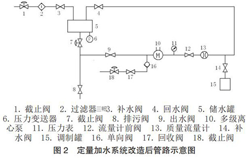 根據(jù)設(shè)計思路,對定量加水系統(tǒng)的管路進行了改造設(shè)計,改造后管路示意圖如圖 2 所示。