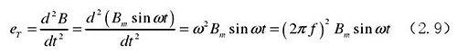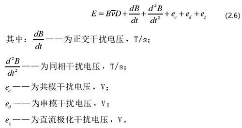 從上圖 2.5 中可以觀察到兩個電極、勵磁線圈、轉(zhuǎn)換器內(nèi)阻之間形成了一個閉合回路,將此回路稱之為初級繞組,從理論上進行分析,磁力線 B 應當平行于勵磁線圈所產(chǎn)生的磁感應線,但在實際的應用過程中由于工藝差異,因此無法達到理想狀態(tài),會產(chǎn)生磁力線穿過勵磁線圈磁感應線的情況,此時將會產(chǎn)生相應的感應電動勢,將此部分感應電動勢稱為變壓器效應。此效應同樣滿足于楞次定律,利用楞次定律進行計算可得如下電動勢: