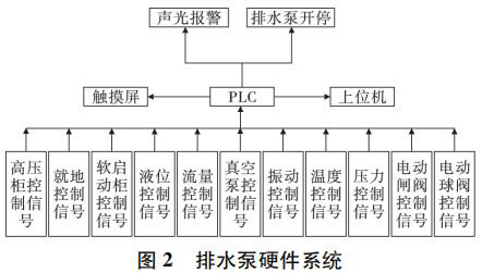 高溫蒸汽流量計自動化運行監控系統主要由 PLC、傳感器、交換機、上位機、監控系統等組成,從而實現水倉水位、水泵運行等全方位進行監控。排水泵硬件系統如圖 2 所示。