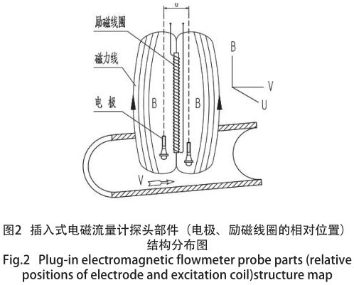 煤層注水流量計(jì)的測量探頭測得管道內(nèi)部特定位置(管道內(nèi)徑的 1/8 處)的局部流速,以確定管道流速,煤層注水流量計(jì)的傳感器是在測量探頭外側(cè)形成外發(fā)射磁場,測量電極在傳感器的端部。