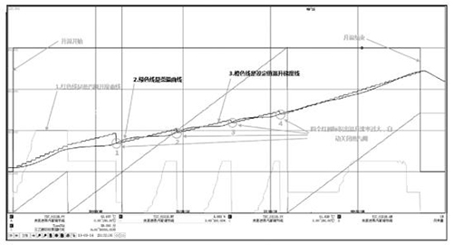 全過程升溫曲線見圖 2,從圖 2 可以看出,通過上述工藝參數的設定,從升溫開始到升溫結束,管道式流量計溫基本上是按照溫升梯度進行升溫,當出現溫升速率太快時,蒸汽閥自動關閉,無需人工參與,可以自動控制管道式流量計料液溫度的平緩上升,實現脫溶單元操作自控運行。