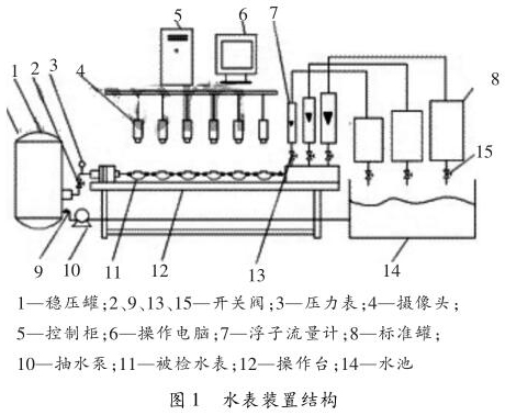 水表檢定裝置是全自動水表校驗裝置,水表檢定裝置以計算機為核心,它在需要檢定水表上方安裝攝像裝置,連接到圖像采集和高速計算器中,計算器可以識別水表指針的流量數值,自動控制水流量,實現水表檢驗的全自動化,針對水表檢定裝置存在的問題提出解決方案,減少水表檢定裝置在使用過程中出現質量問題,讓水表檢定裝置可以不斷完善。