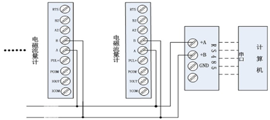 手操器與污水流量計量表連接如下圖所示: