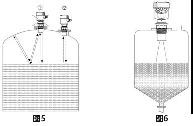 6、對(duì)于頂部為平面的錐形容器,四線制超聲波液位計(jì)應(yīng)盡量安裝在頂部中央,這樣可以保證測(cè)量到容器底部,如圖6所示。